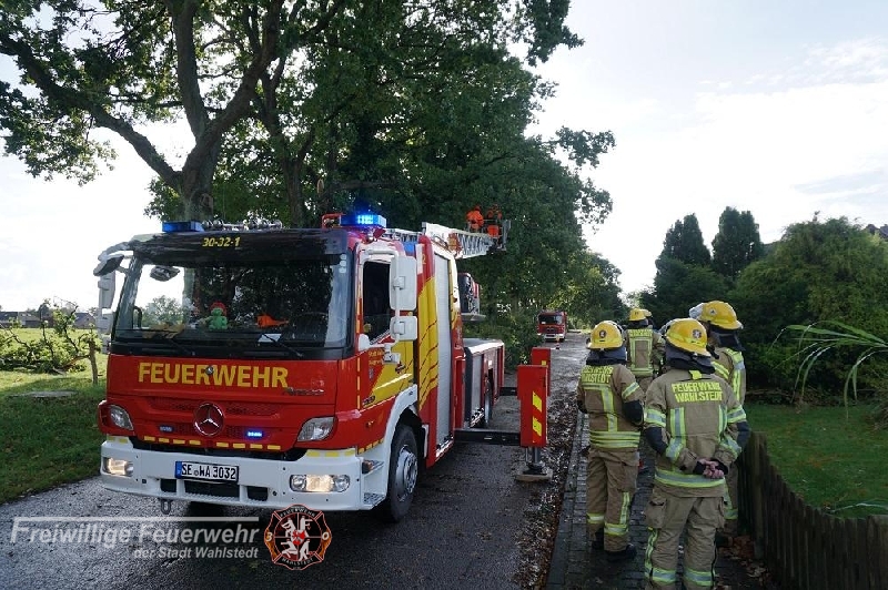 Ein größerer Ast drohte auf die Straße zu fallen. Die Gefahrenstelle wurde durch die Feuerwehr beseitigt.