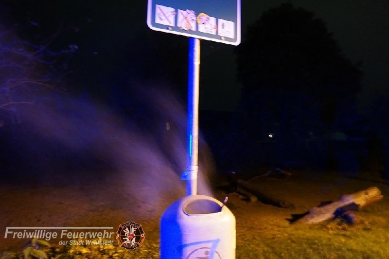 Durch einen Spaziergänger wurde über den Notruf ein brennender Mülleimer auf dem Spielplatz an der Spielemeile Kronsheider gemeldet. Mit einem Kleinlöschgerät wurde das Feuer gelöscht.