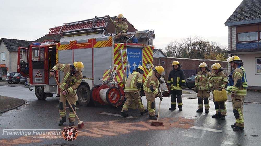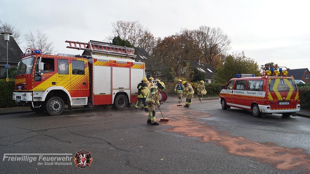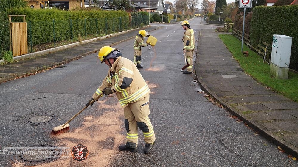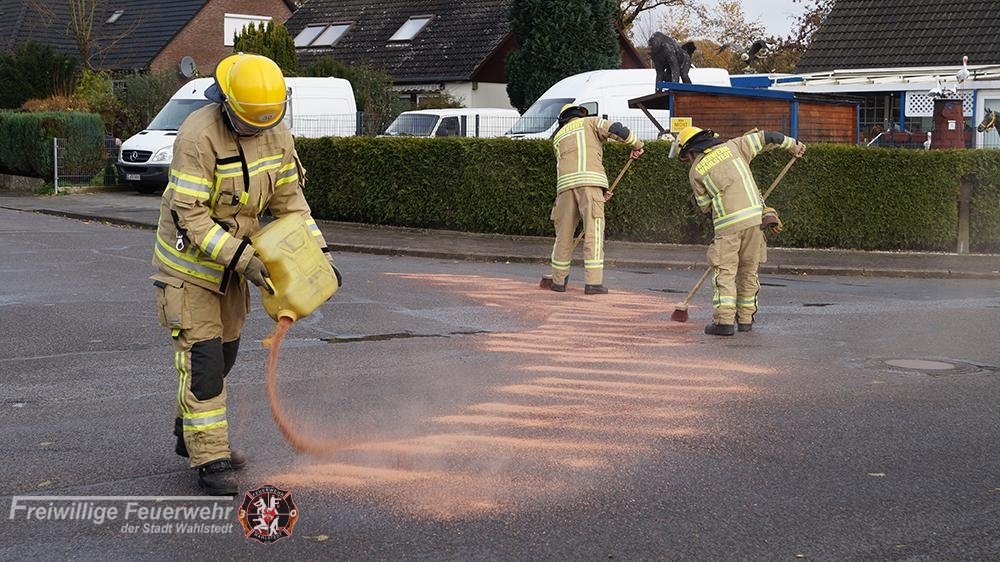 Diverse Ölspuren im Stadtgebiet Wahlstedt wurden durch die Feuerwehr abgestreut und mit Schildern "Ölspur" abgesichert. Ein Verursacher konnte nicht festgestellt werden.