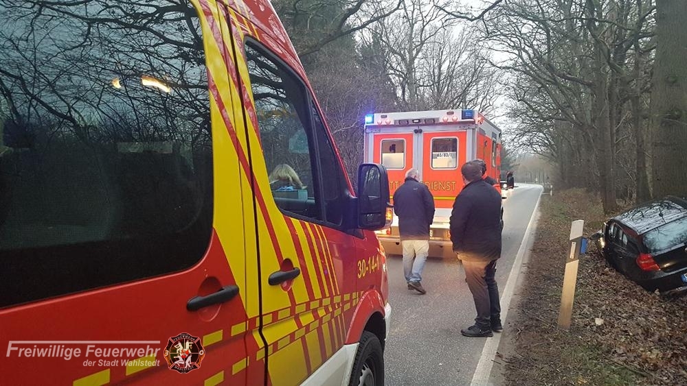 Eine Gruppe der Feuerwehr Wahlstedt befand sich auf dem Weg zu einer Besichtigung als sie von der Rettungsleitstelle über einen Verkehrsunfall in Kayhude informiert wurde, mit bitte die Einsatzstelle anzufahren.