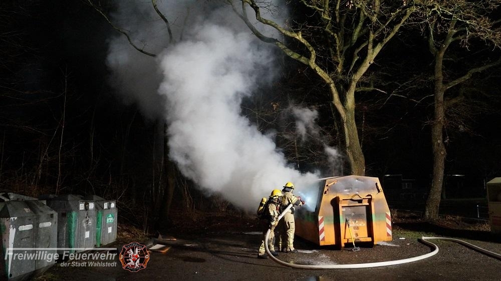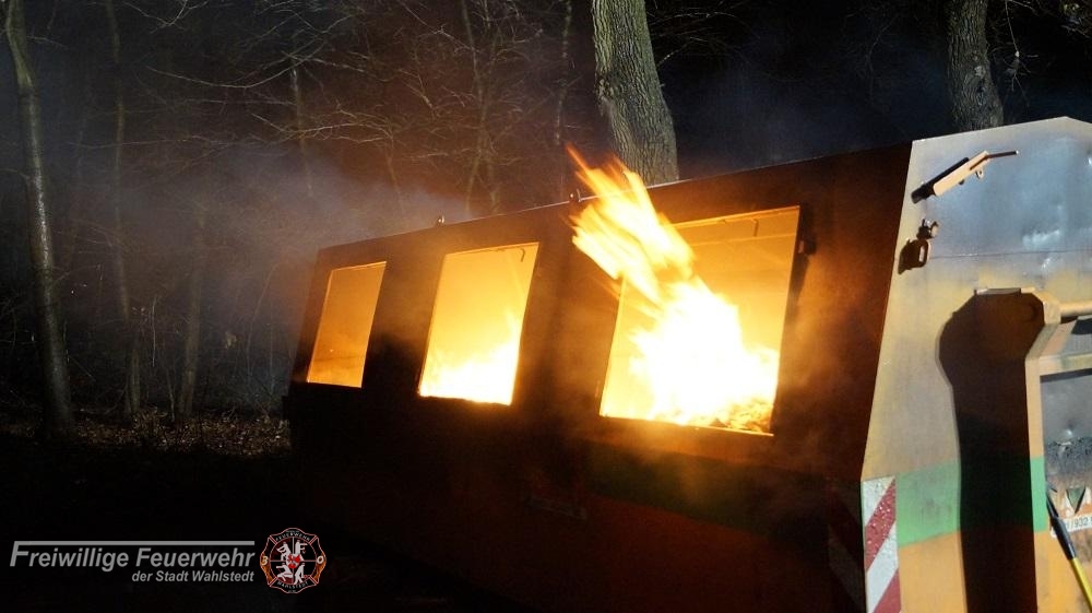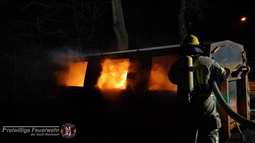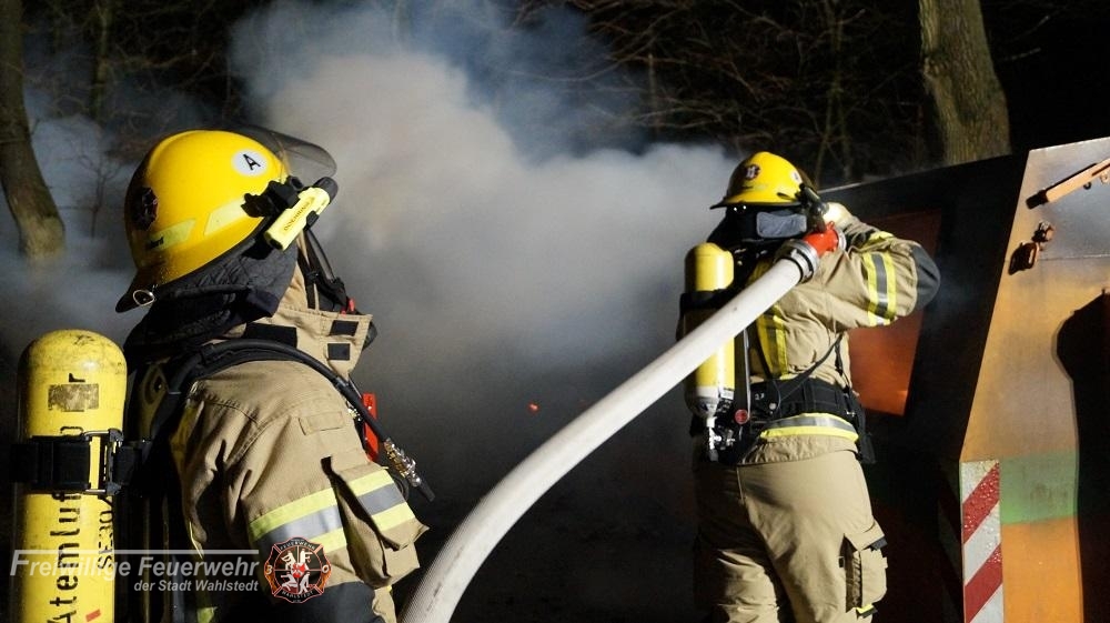 Der Container wurde durch die Feuerwehr gewaltsam geöffnet und der Inhalt mit einem B-Rohr abgelöscht.