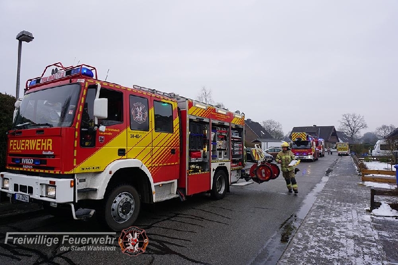 Ausgelöste Rauchmelder sowie eine starke Rauchentwicklung aus dem Keller und Schornstein veranlassten die Eigentümerin den Notruf zu wählen. Die Feuerwehr setzte für die erste Erkundung einen Atemschutztrupp ein, zwei weitere standen in Bereitstellung. Paralell dazu wurde eine Angriffsleitung, ein Rauchschutzvorhang aufgebaut sowie Belüftungmaßnahmen vorbereitet. Die Erkundungsmaßnahmen des Atemschutztrupps ergaben, dass es zu einem Schwelbrand gekommen ist, der mit einem Kleinlöschgerät gelöscht werden konnte. Die Bewohnerin hatte bis zum Eintreffen der Feuerwehr das Haus mit ihrem Hund bereits verlassen und wurde während der Maßnahmen der Feuerwehr vom Rettungsdienst betreut.