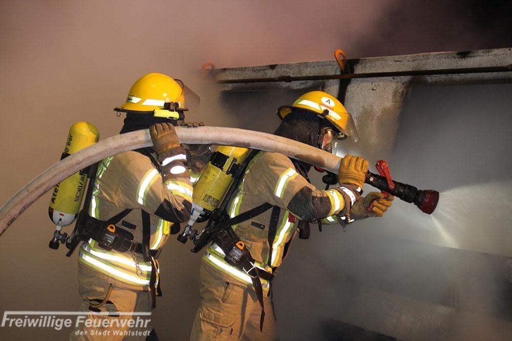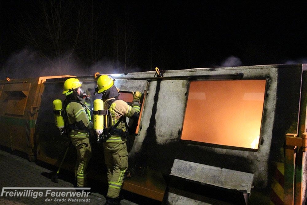 Der Papiercontainer wurde durch den Angriffstrupp unter Atemschutz geöffnet und mit einem B-Rohr abgelöscht.