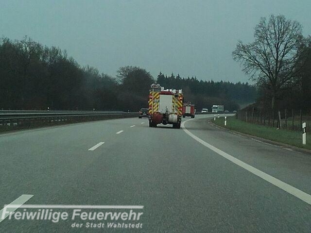 Nach der Alarm- und Ausrückeordnung wurden die Feuerwehren Daldorf,Rickling und Wahlstedt auf die BAB 21 Fahrtrichtung Wahlstedt zu einem brennenden Personenkraftwagen alarmiert.